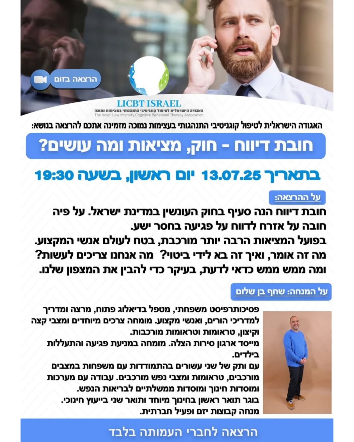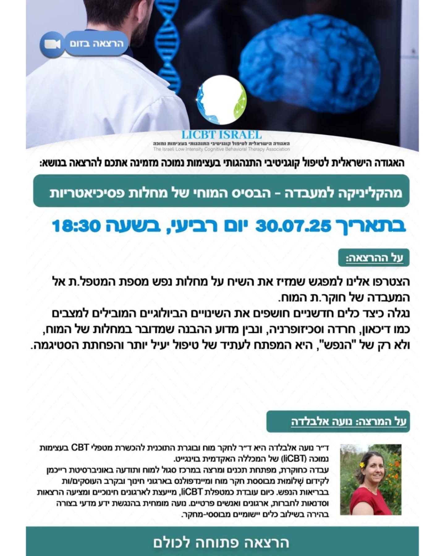 CBT TEAM הרצאת אורח של פרופסור יהודה בר שלום